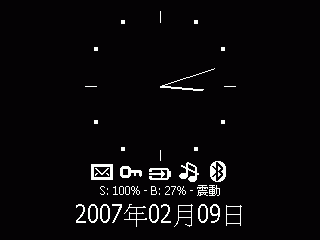 底下那排 icon 會隨時跟著 smartphone 的狀態作變化, 像是有沒有開 wifi, bluetooth, 電池有沒有電, 有沒有漏接來電等等… 還挺方便的, 另外有顯示溫度 ??? 不過那個溫度怎麼看都不準, 不知道資訊是打那來的?