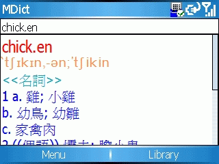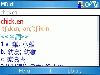 這年頭, 連手機都有 clear type …. =.=, 左邊的是開 clear type 的效果, 右邊的沒有… 其它就沒啥特別了, 就是一般的字典而以.. 我裝了英英跟英漢兩套, 果然有 qwerty keyboard, 查起來真順手, 哈哈…