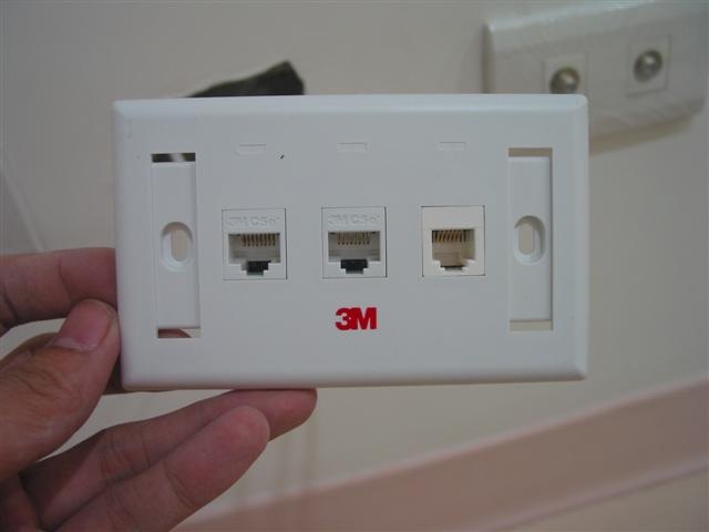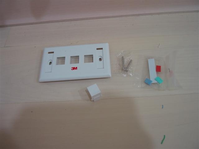 這就是貴鬆鬆的 3M 免工具的資訊插座, 這一定要推一下… 我是買最便宜的, Cat5e, 沒防塵蓋, 沒有接地… 一個要 NTD 78.. 普通的只要三四十啊… 不過這一定是值得的, 請繼續看. 還有更高級的一個要兩三百, 那種實在是買不下去, 這種就很好用了…