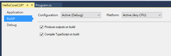 專案的設定頁面,記得勾選 “Produce outputs on build”, 才看的到編譯好的輸出檔案.. 設定完之後存檔,BUILD,到 solution / artifacts / bin / 下可以看到編譯好的檔案