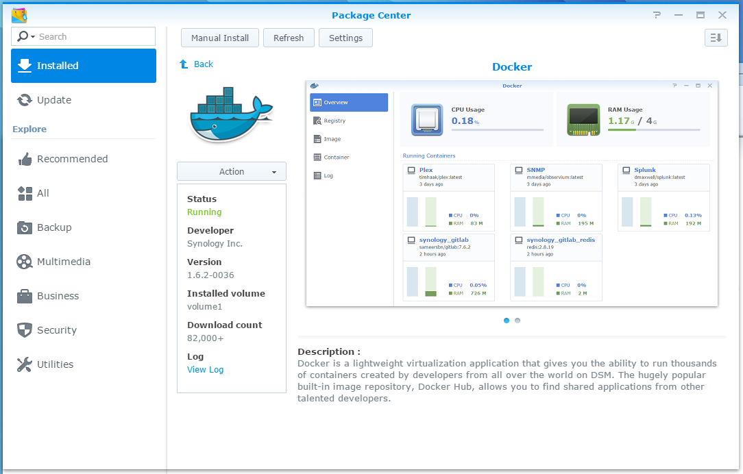 看完別太興奮,馬上衝去買 NAS …,如果真的是為了 Docker 想採購的話,務必先看一下支援清單.. 以 Synology 的來說,只有部分機種 (都是 intel cpu 為主) 才支援。詳細清單可以參考這裡: