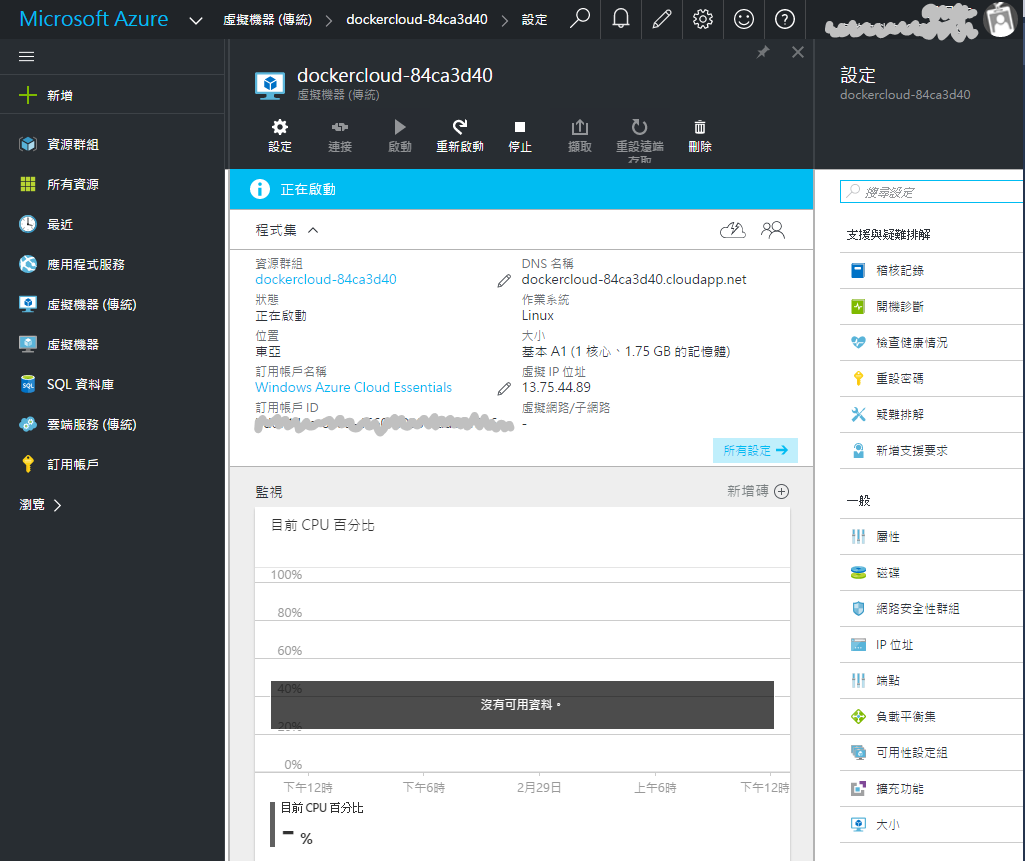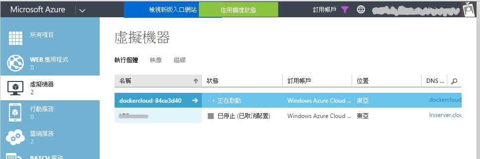 之前一直預告要在 Azure 上面快速佈署 Docker Engine / Container, 現在終於做到這一個步驟了。由於之前一直都是 Linux 的門外漢,所以講了一口好架構,但是真的要實作驗證時,總是碰到不少難關,現在一一克服了,就把這些過程整理一下~