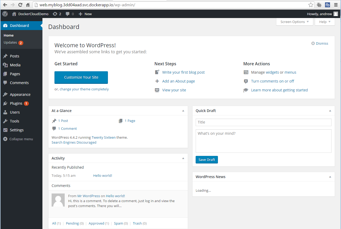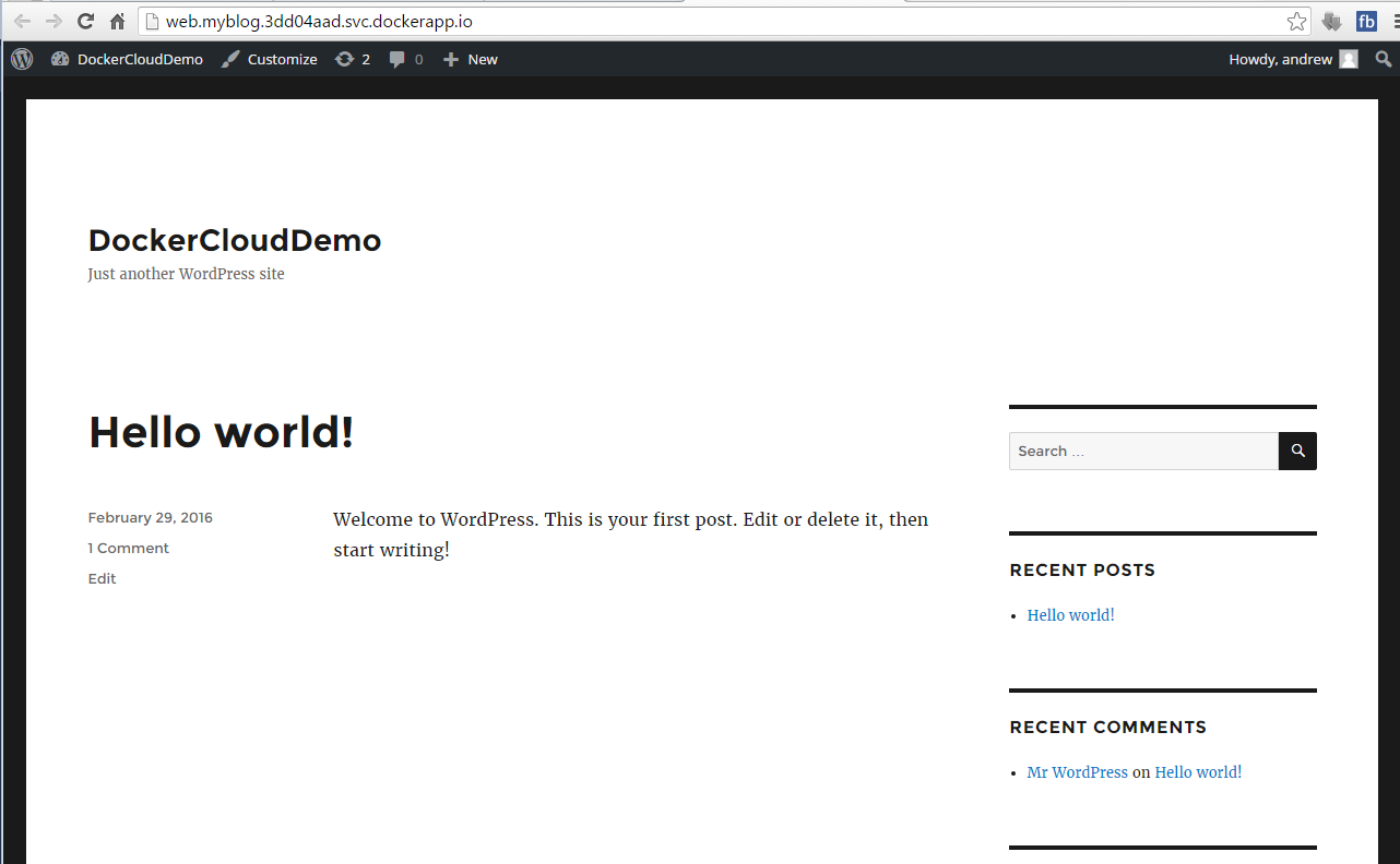當然首頁也看的到了。到此為止,整個任務全部結束,你已經有一個穩定可靠的服務,在 Microsoft Azure 上面成功的運作,而且你也可以用 Docker Cloud 的管理介面輕鬆的維護他們。很簡單吧?