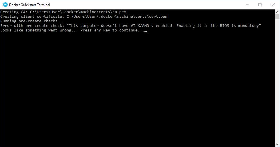 其實這次的問題的根源很簡單。由於已經是被模擬出來的 Virtual Machine 了,模擬出來的 CPU 就不再支援 VT-X / AMD-V 這些硬體輔助的虛擬化能力了。然而 Docker 是需要 Linux 的 Kernel 來運行的,在 Windows 環境下至少要先準備個 Linux VM (Docker Toolbox 預設使用 Virtual Box), 才有能力執行任一個 Docker Container..