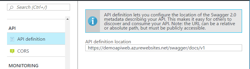 這個設定不是給你用的,而是其他服務如果需要 discover api services, 那 azure 的環境就會知道要到這邊取得你的 API 定義。