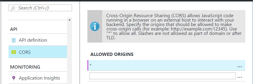 CORS 設定不需要重新 deploy api apps, 只要來 portal 更改設定即可。
