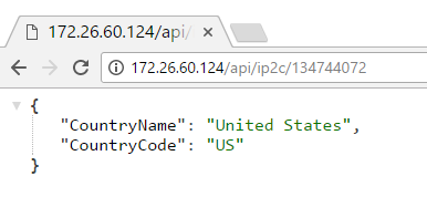 國家的 REST API。查詢格式是: /api/ip2c/134744072 (數字部分是 IPV4 的 4bytes 數值轉成 int, 範例是 8.8.8.8, 換成 int 是