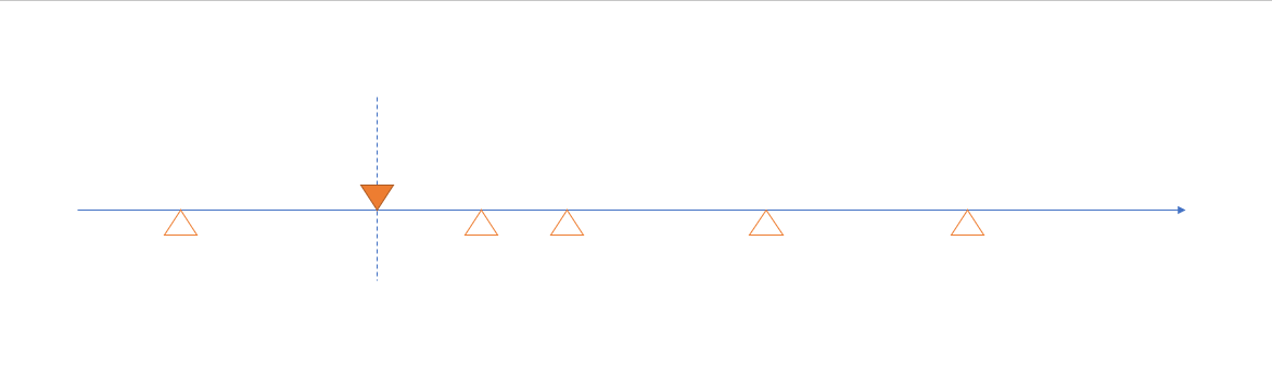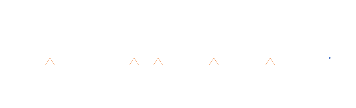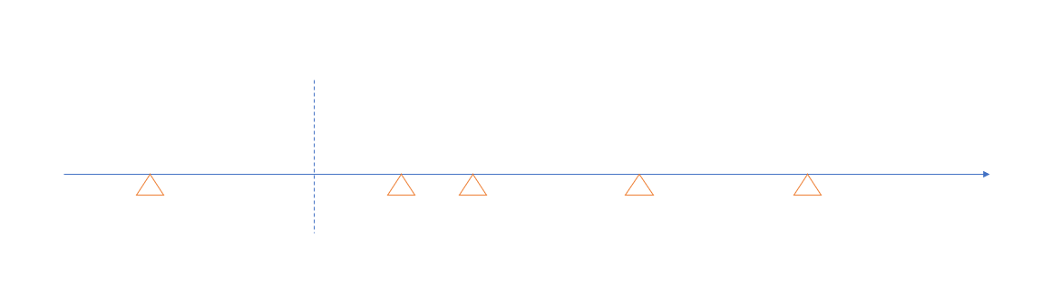 用圖示化的方式說明一下這過程吧。由左到右是時間軸,空心三角形代表預定執行的 Job: