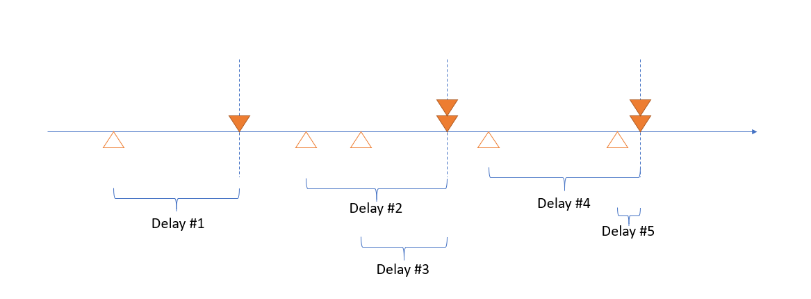 我們分別標出每個 job 的延遲時間 (Delay #1 ~ #5)