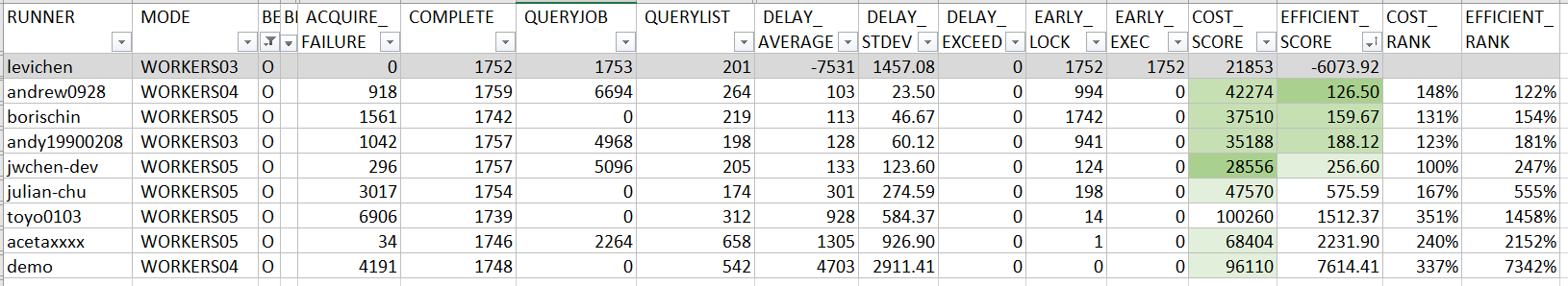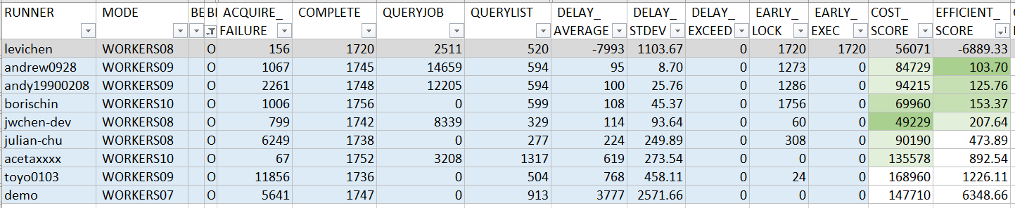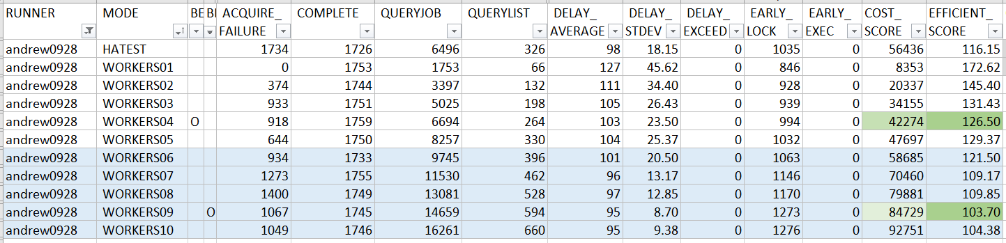 其實我不用挑最好的那筆,EFFICIENT_SCORE 也可以拿到第一名啊 XDDD, 何況 instances 降低了,COST_SCORE 也會跟著降低,如果單純要拚排名, 其實我拿 WORKERS02 那筆紀錄, EFFICIENT_SCORE 就已經是 145.40,COST_SCORE 是 20337, 足以拿到兩個分數都是第一名…