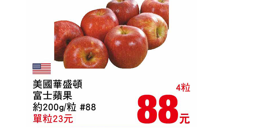 NOTE: 指定商品 (蘋果) 單粒 23 元, 4 粒 88 元