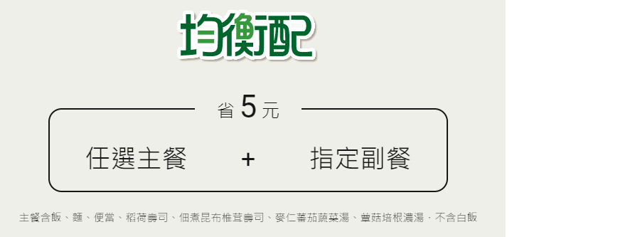 NOTE: 任選主餐 + 指定副餐 折 5 元