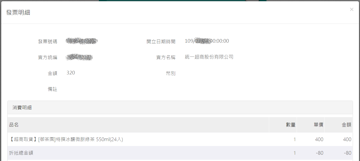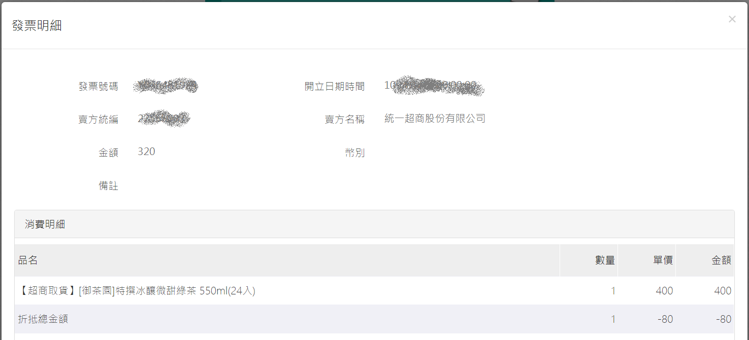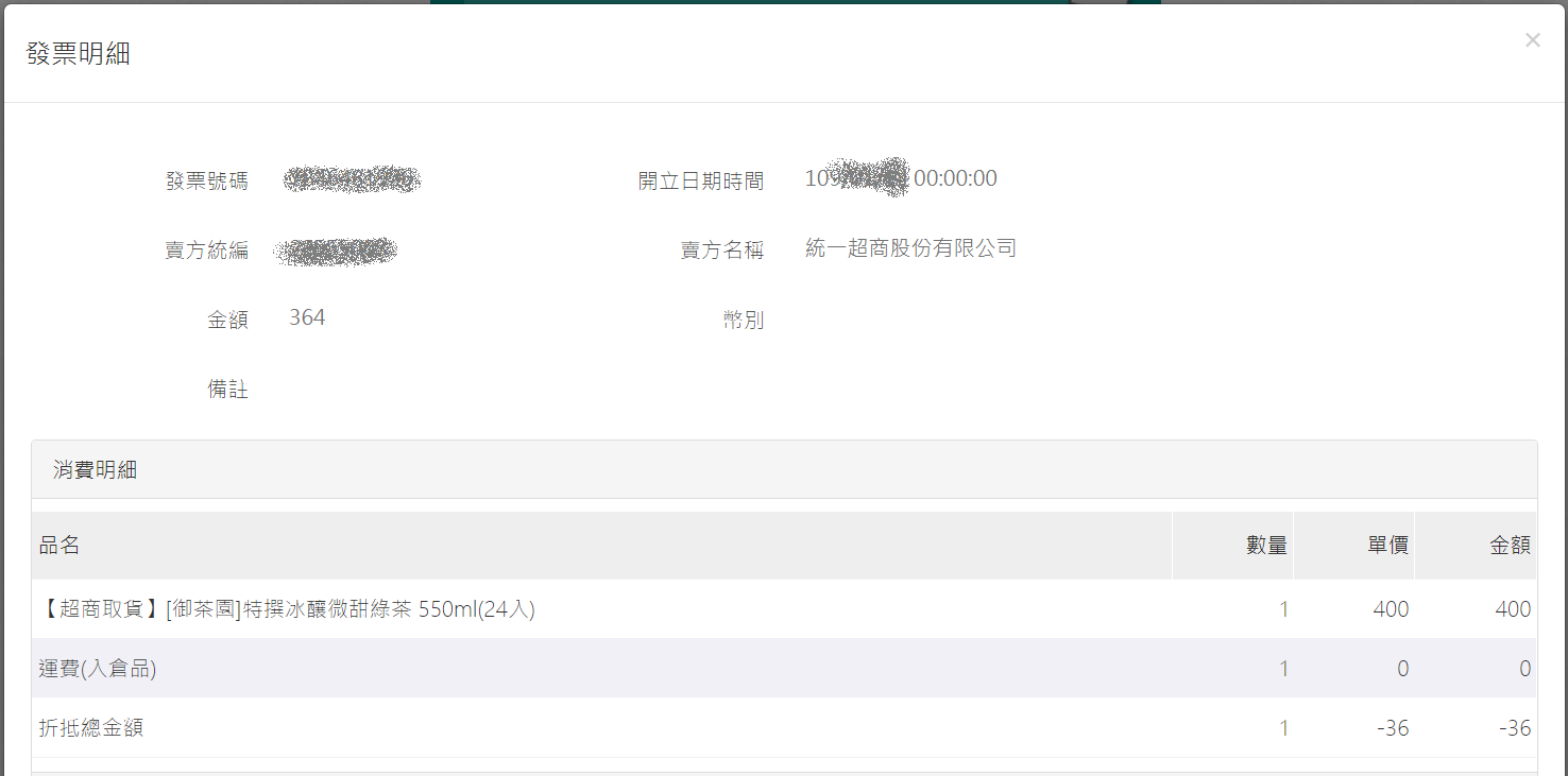 - 結帳的收據明細顯示