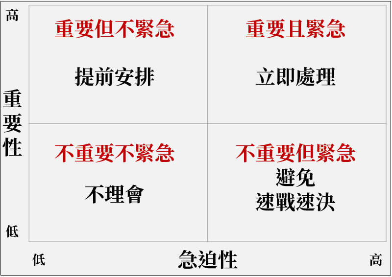 重要但不緊急的事情,你應該保留固定資源持續推動,並提早安排。