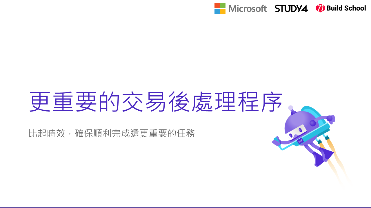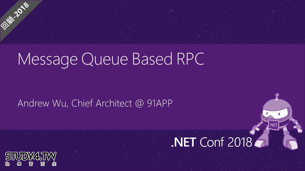 這個 session 就是說明如何善用 C# 的 async / await 機制,搭配雙向的 message queue 通訊,搭建以 message queue 為基礎的 RPC (Remote Procedure Call) 的設計。你可以同時兼顧 message queue 帶來的可靠度與高效率, 也可以藉由 C# 的 async / await 帶來接近 real time 的便利性。
