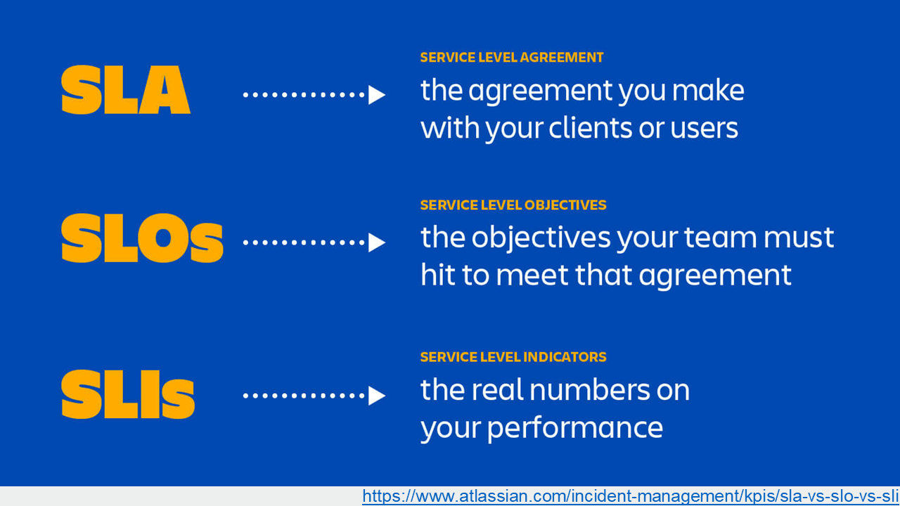 最後補上前面沒提到的 SLA ( Service LEvel Agreement )。維運團隊內部,工程單位看的是 SLO / SLI, 而 SLA 則是跟使用者達成的協議 (Agreement) 或是合約。意思是當服務未達預期目標 (SLO) 時,服務方應該要做的處置,以及事後的賠償條款等等。