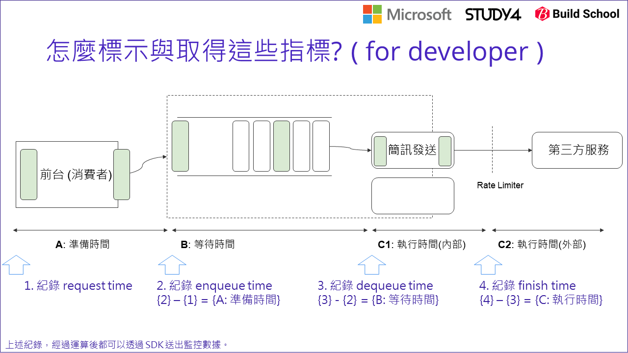 只要讓開發人員預先在這四個點,都記錄當下的時間,剩下的用計算的就能知道: