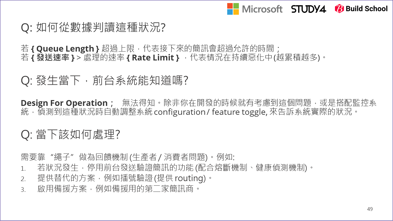 - 議程很有啟發,”1. Queue 也應該有 QoS 設計; 2. Design for Maintenance”