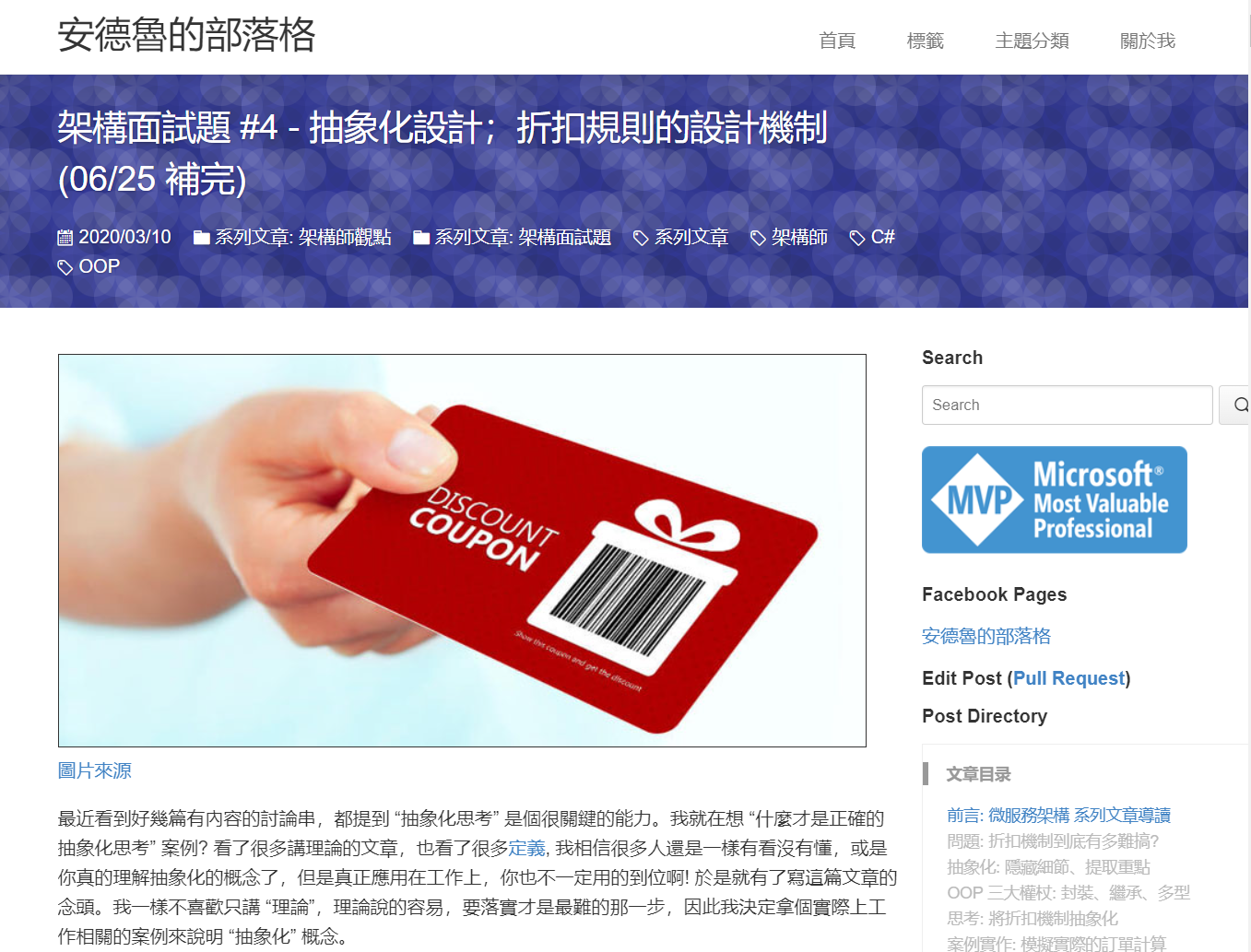 這整個過程,最重要的能力就是 “抽象化” 了。我舉一篇我自己在說明抽象化很有代表性的文章: 抽象化設計;折扣規則的設計機制 來當案例: