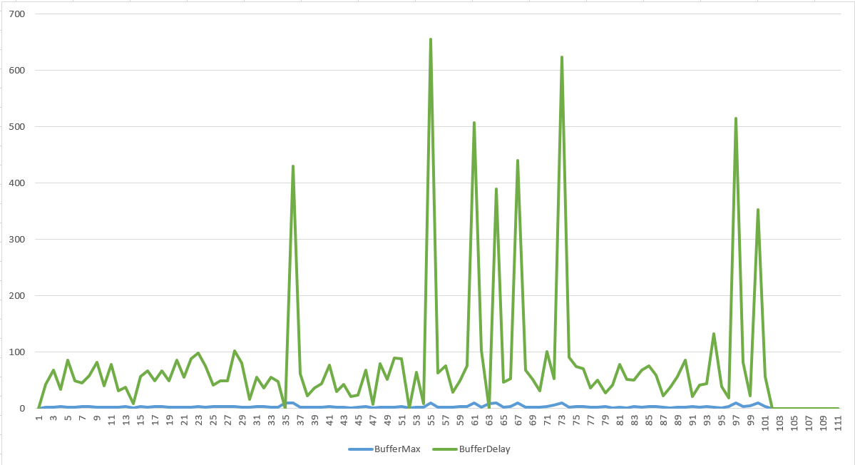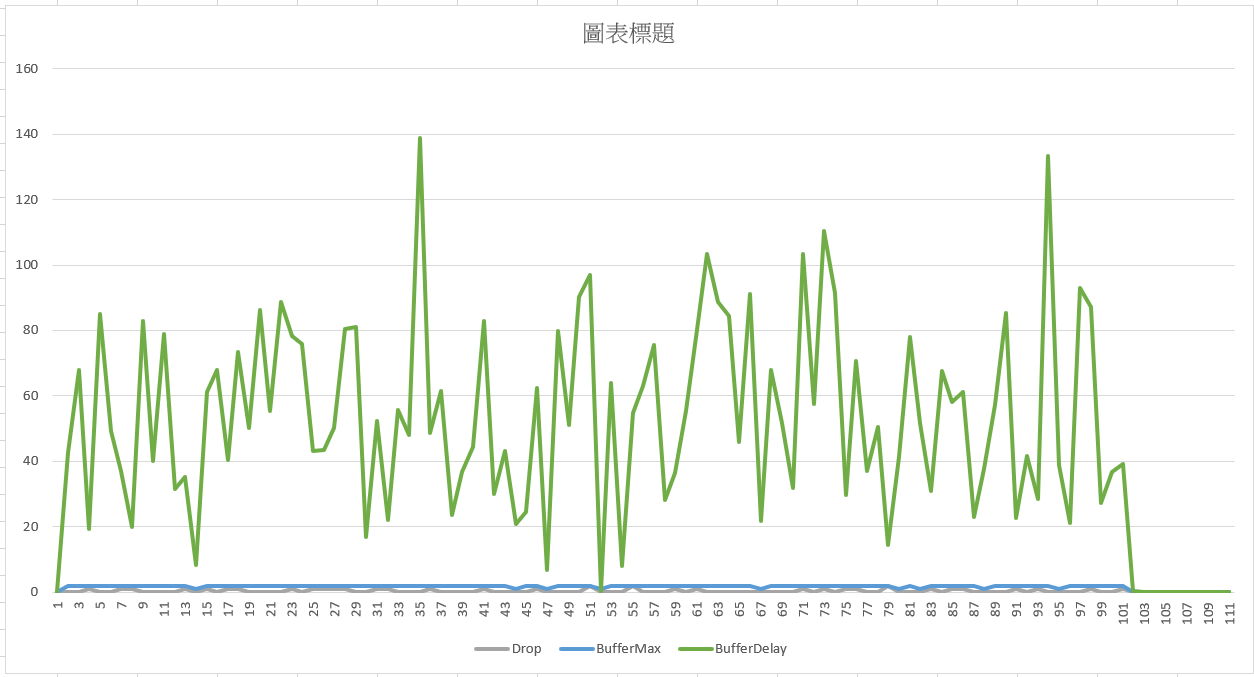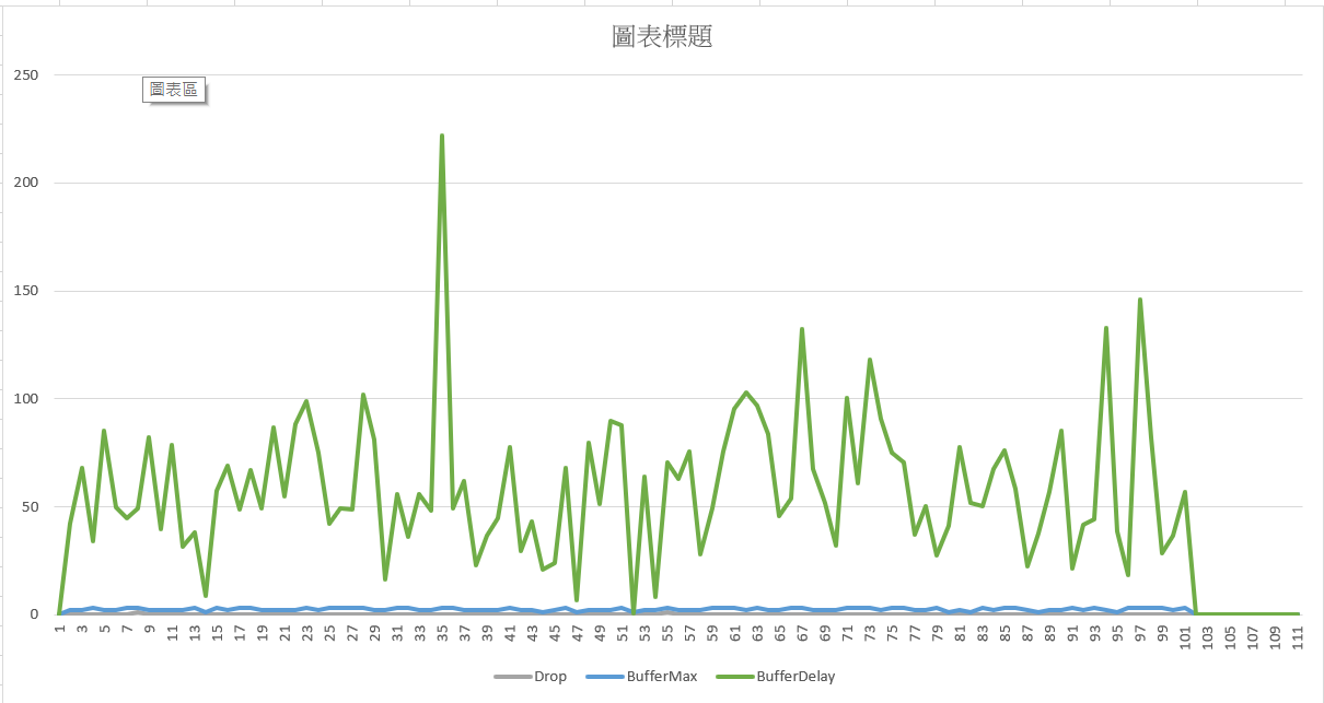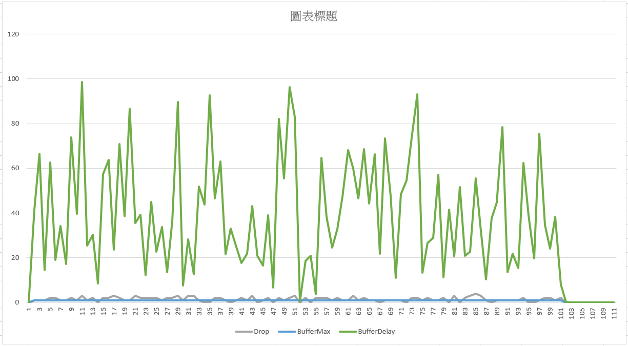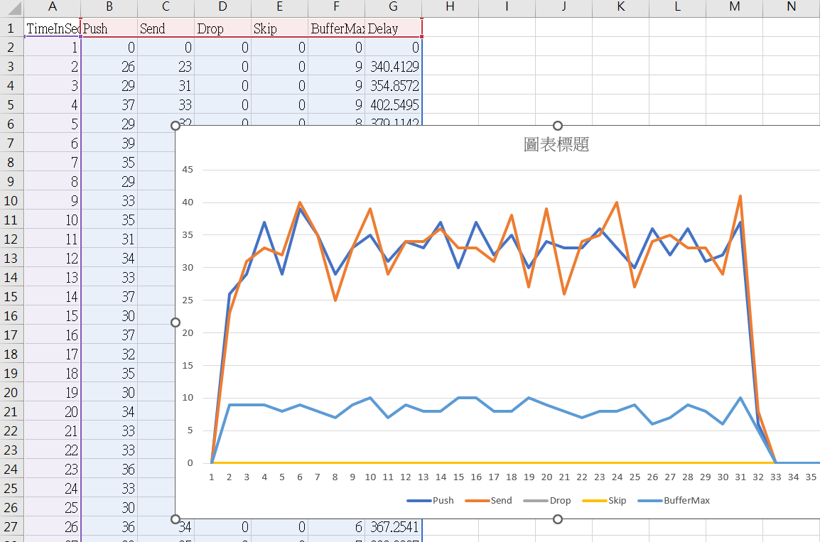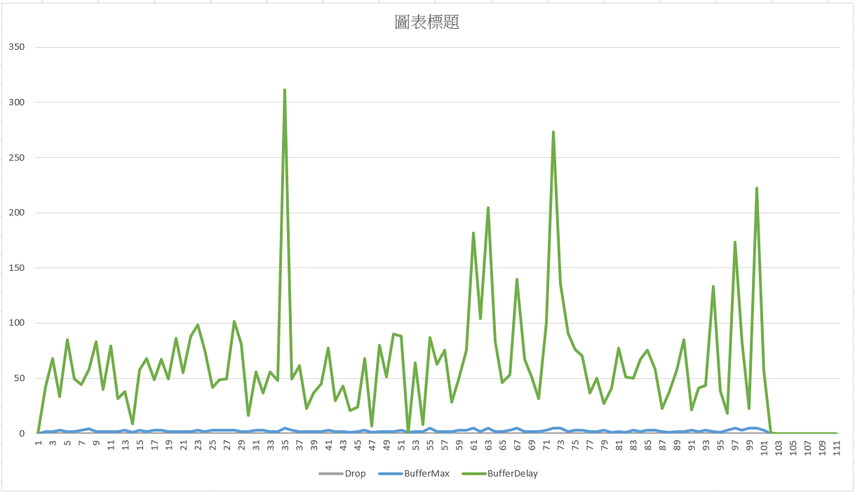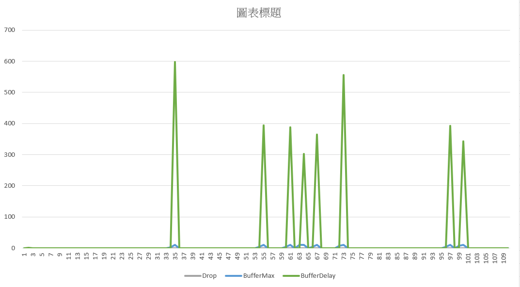 過程中每個指標我都有輸出 CSV, 我只拉出 Drop, Buffer Usage & MaxDelay 這幾個數值出來觀察: