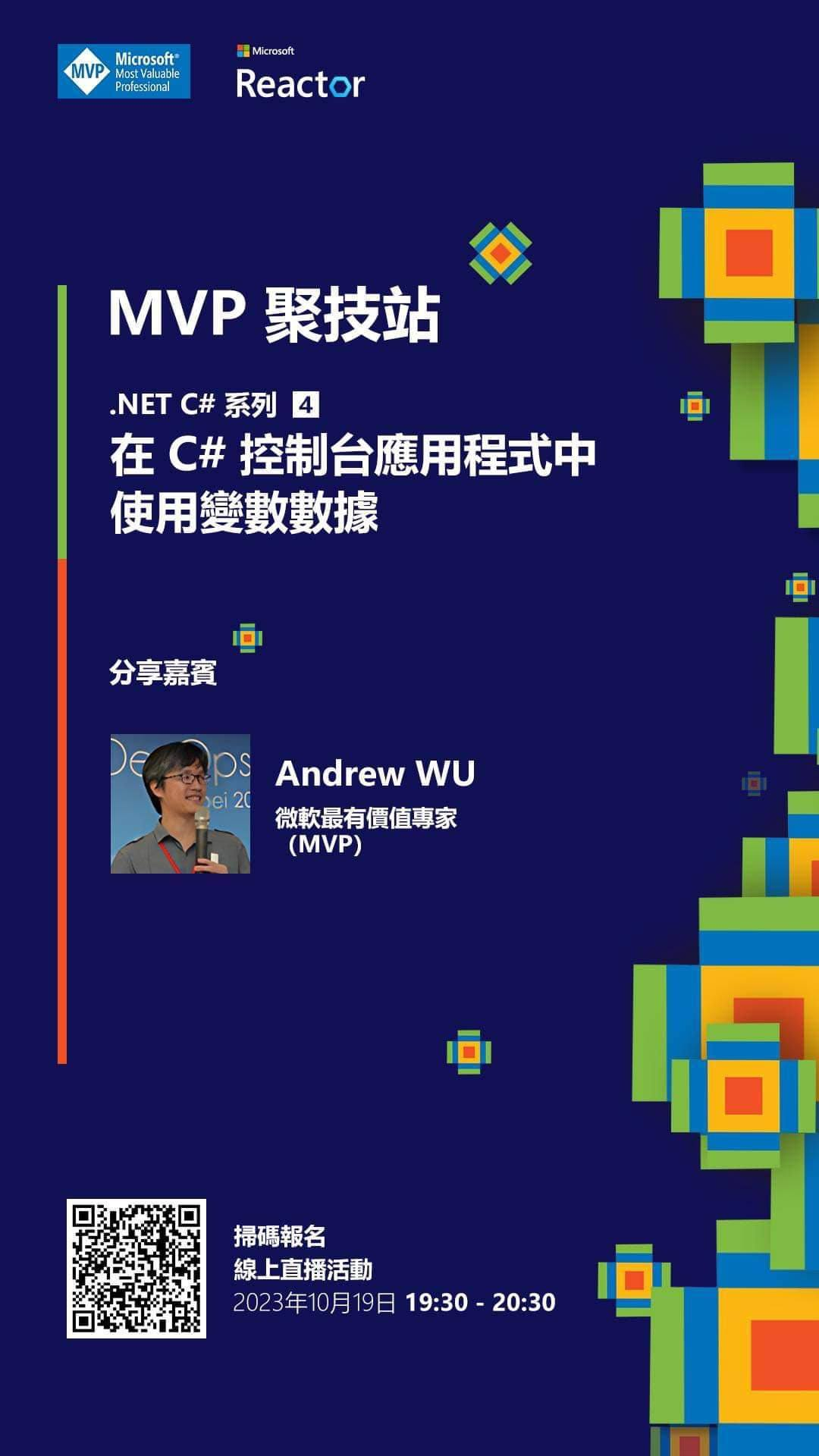 整個 Learn C# 系列其實有六個章節,我認領的是第四章。本來我應該是 10/19 就要上場的,不過在那之前正好碰上重感冒,所以就延到這周四了。所以,我這算是最後一場了,其他五場也都是另外幾位熱心的 MVP 負責,有興趣可以接著看。