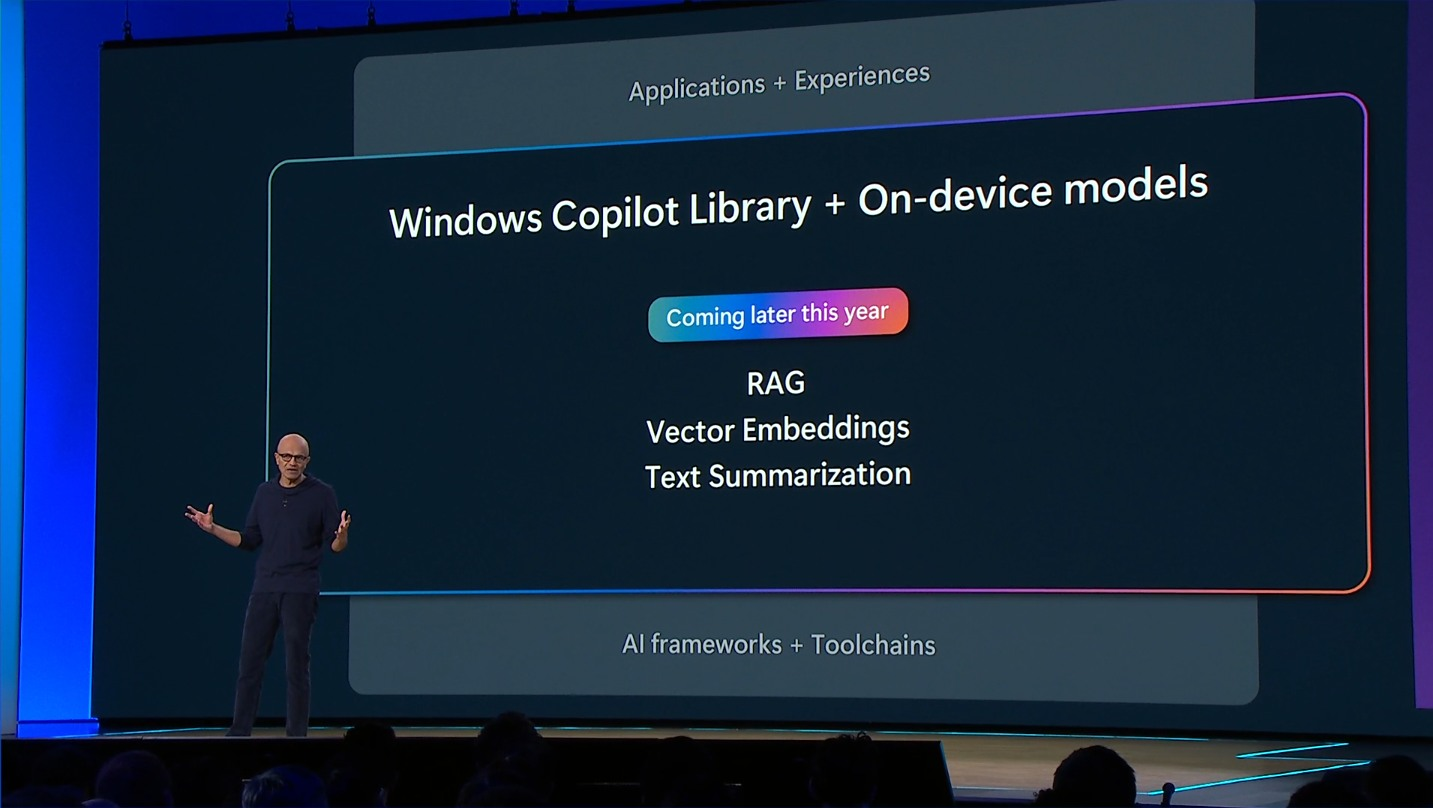 看了一下,有本地端的 SLM,Text Embedding Model,有 Copilot Stack,有 Microsoft Copilot (以後的 Portal?),規格還未明,但是至少是個 AI Ready 的環境了。開發者要的不多,這是第一步..