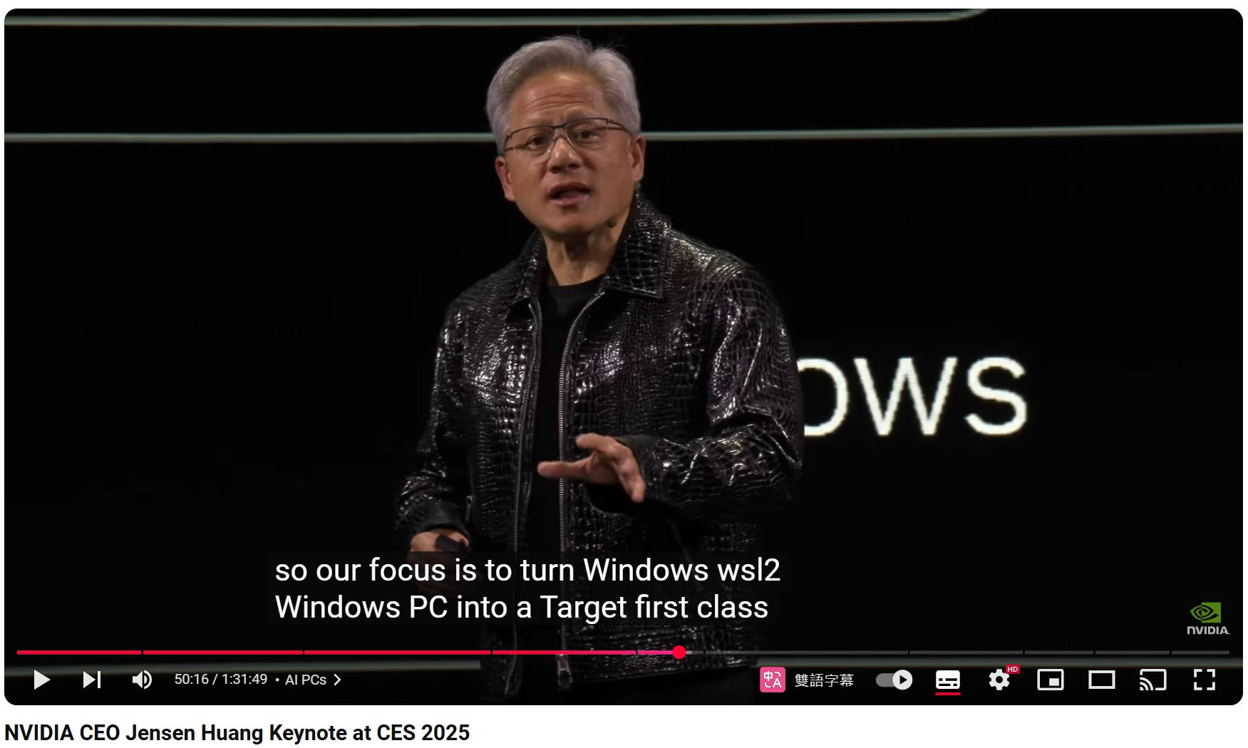 老黃這段 Keynote 整段都很值得看,其他主題有機會再來聊聊,我今天就先只貼 WSL2 這段..