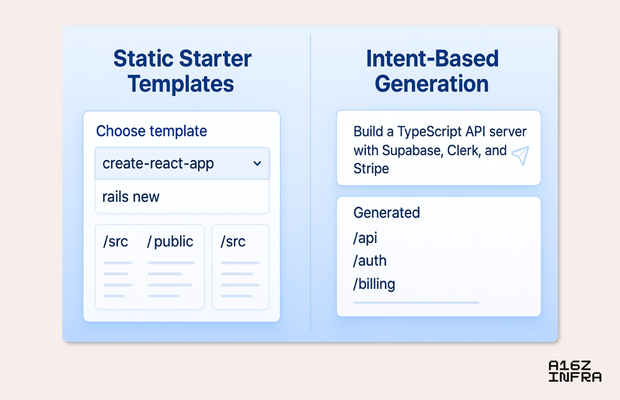 A16Z, AI 趨勢報告的第四項, Templates to generation: Vibe coding replaces create-react-app