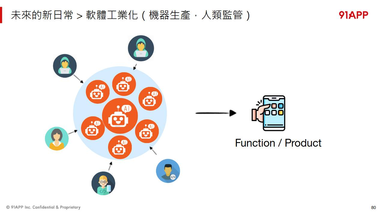 這不就是未來理想的樣貌嗎? 這段原文沒有給圖,我用先前在 Generative AI 年會,我老闆的一頁投影片當作結尾,在闡述的就是這樣的場景。