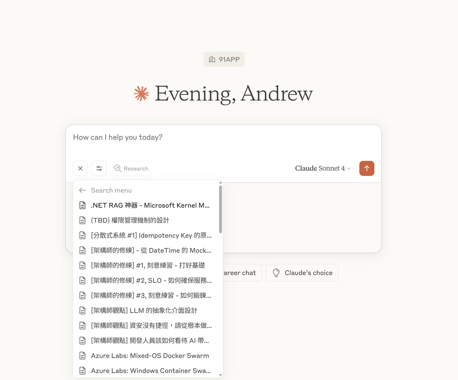 原來 Claude Desktop 需要使用者 “自己去” 選附加檔案, 然後才選的到 resource 啊… (我還以為按 @ 就能自動選 XDD) 。我把我部落格每篇文章都當成是一個 resource, 共有 400 個, 實作了分頁機制, 每頁 50 筆.. 結果 Claude Desktop 這樣呈現 (圖一)